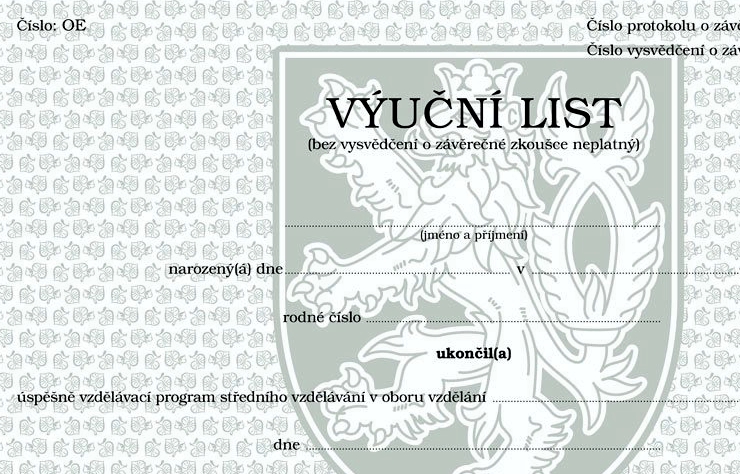 Po úspěšném absolvování zkoušek dostanete výuční list a vysvědčení o závěrečné zkoušce. Výuční list je platný jen spolu s vysvědčením.